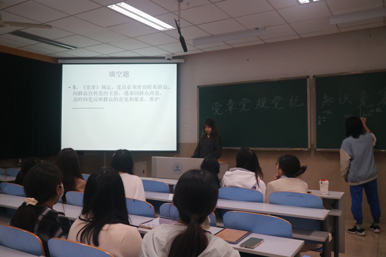 本次活动一共分为必答题、抢答题、风险环节三个部分,题型包括选择题、判断题、填空题、案例分析题等多种题型。在整个答题过程中中,所有同学都认真对待、细致作答,充分展示了入党积极分子对党章党规的知识储备能力,达到了以考促学的良好效果。