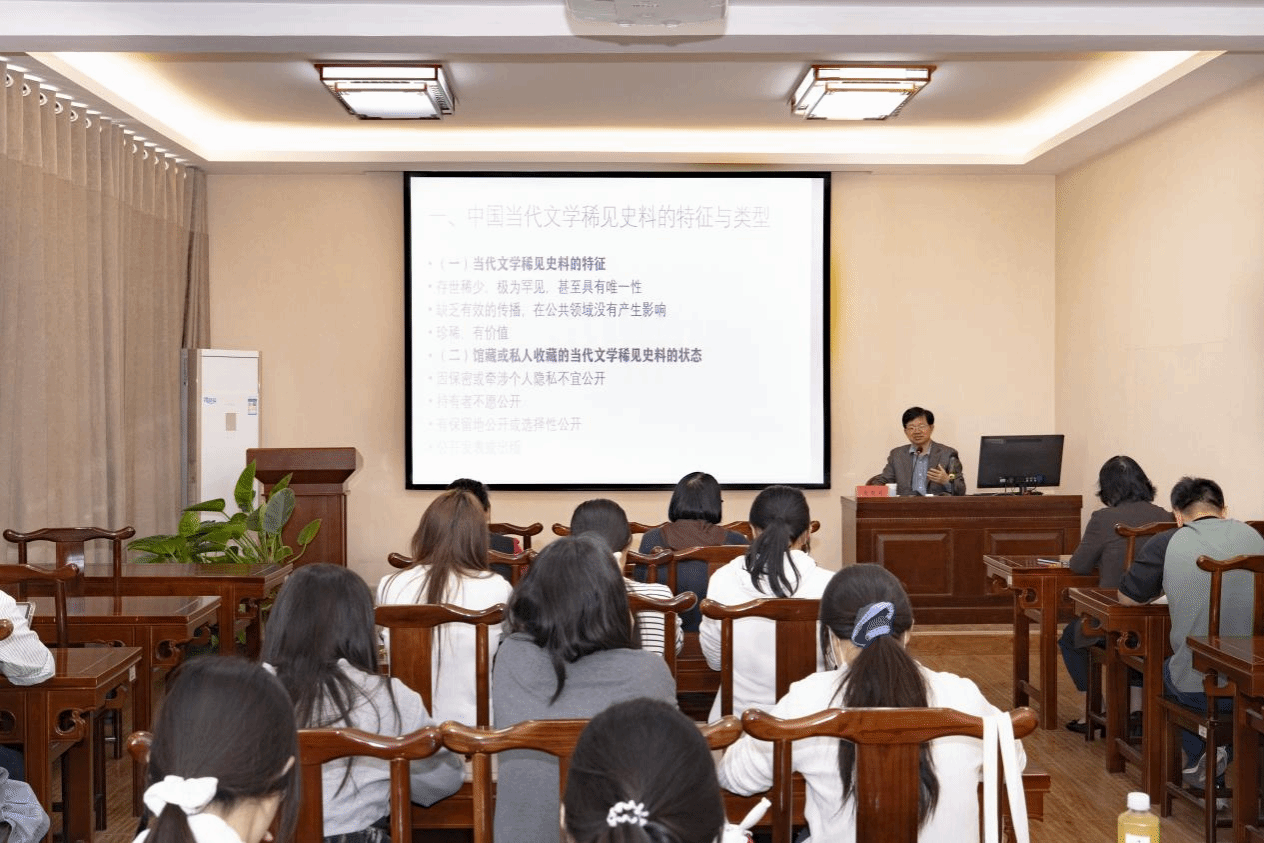 、文化传播学院院长、山东省作家协会主席黄发有做客舜耕书院,带来题为《中国当代文学稀见史料开掘的意义与方法》的专题讲座。讲座内容详实、视角新颖,兼具学术深度与思想启发,吸引了广大师生踊跃参与,丰富了校园学术文化内涵,为推动学院学风建设与人文素养提升注入了新动力。
