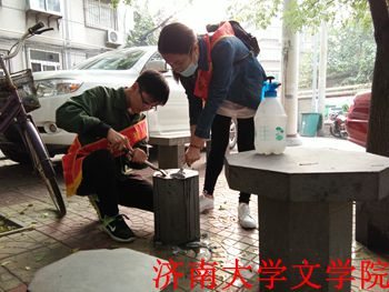 初心志愿者协会的四名志愿者赶赴槐荫区开展义务劳动。