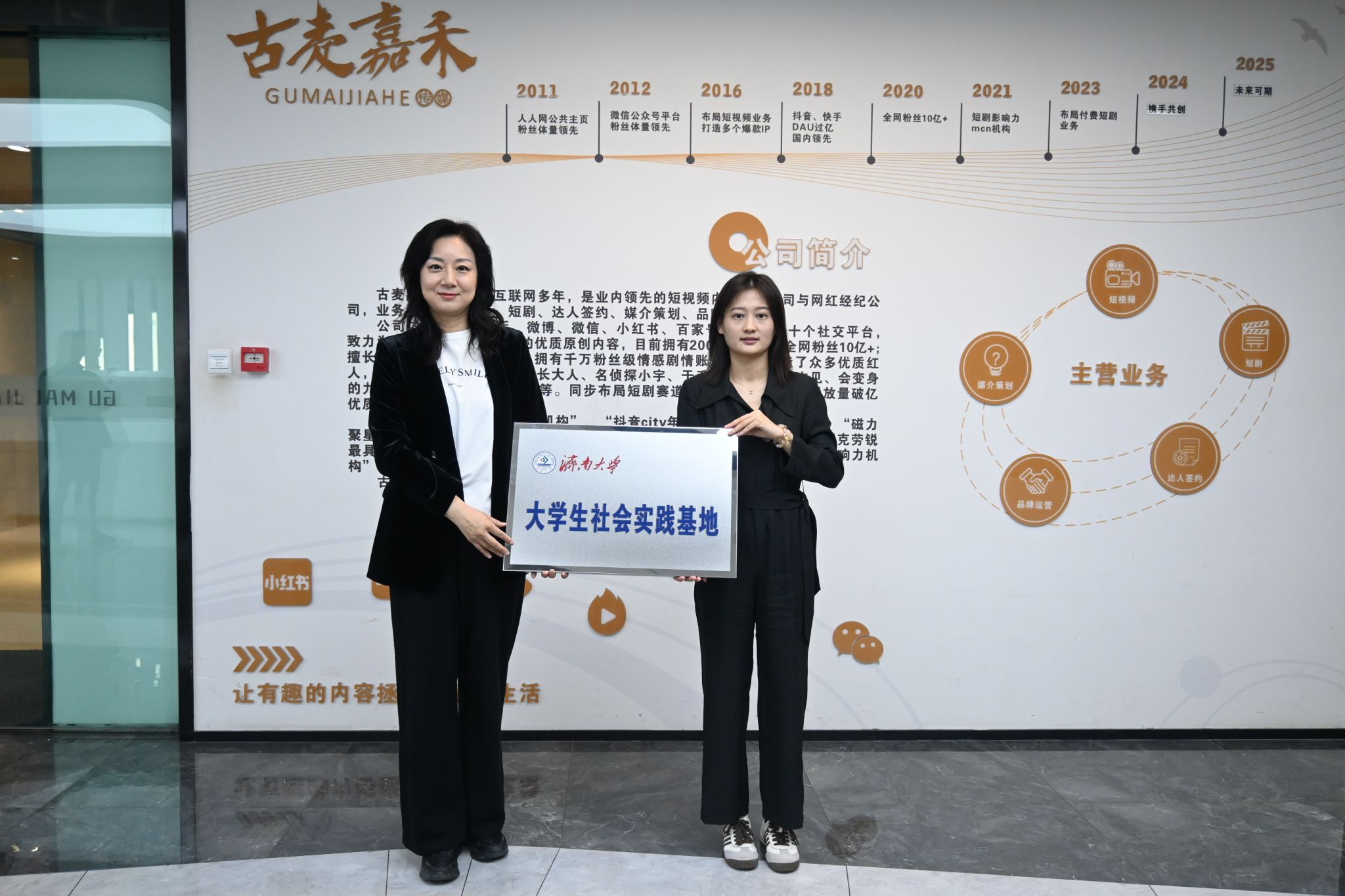 在企业走访过程中,学院一行实地参观企业办公环境和运营情况,详细了解企业发展历程、主营业务、人才需求及岗位设置情况青岛古麦嘉禾科技有限公司成立于2018年3月,是国内头部MCN机构及数字营销公司,在短视频内容、短剧、媒介策划、品牌运营、达人签约等多个业务领域都具有极大的影响力和专业度。青岛杠上开花网络科技集团有限公司是目前国内知名、行业领先的坚持原创内容的新媒体公司,公司于2019年11月布局短视频,现已打造出一支集内容生产、IP运营、商业变现于一体的完整生态链条。