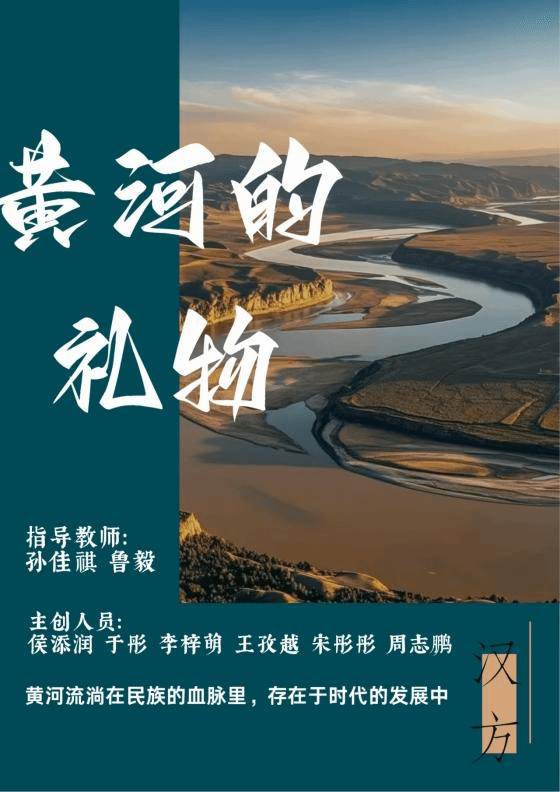 《黄河的礼物》作品海报和主创成员合影