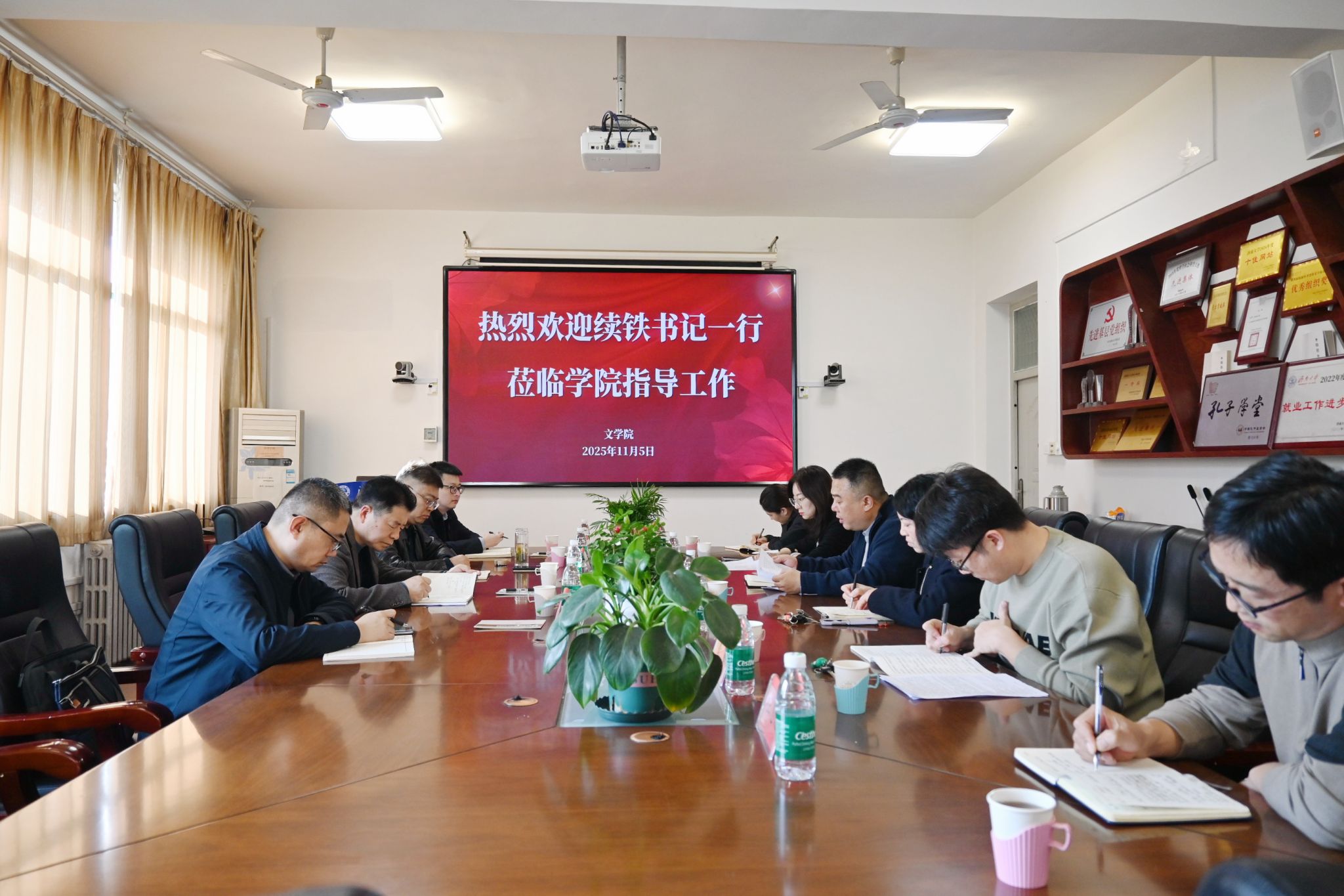 监察专员续铁一行到文学院调研指导工作,并与文学院领导班子成员开展集体廉政谈话。学校纪委、监察专员办公室、党委巡察工作领导小组办公室相关同志陪同,文学院领导班子全体成员参加座谈。