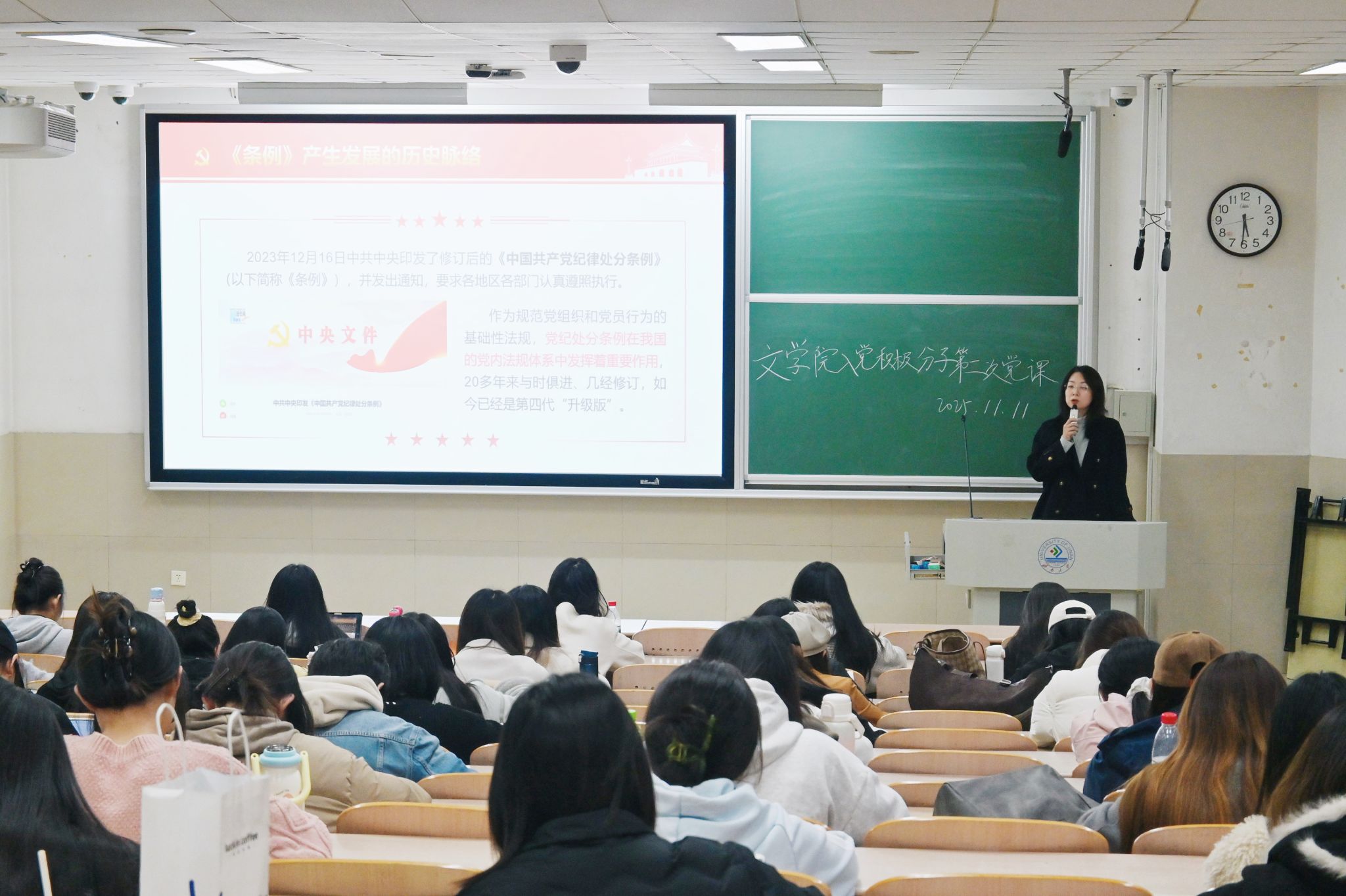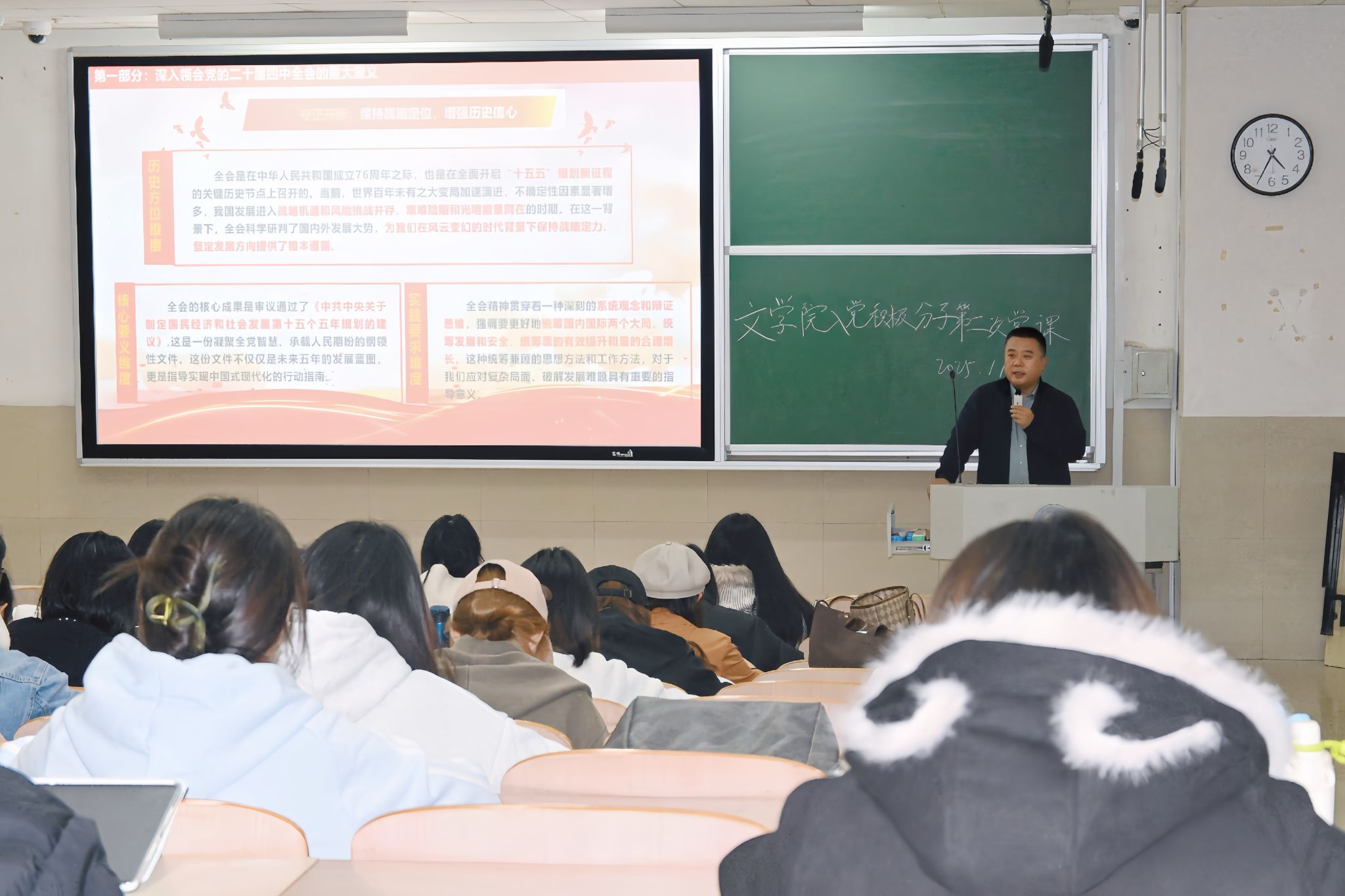 专题党课培训环节,学院党委书记朱海龙以《向着中国式现代化的宏伟目标阔步前行、接续奋斗》为主题,帮助同学们精准把握党的二十届四中全会的核心要义,并重点聚焦“十五五”规划建议中文化强国建设的内容,探讨文化强国建设征程中的专业机遇与青年使命。他希望同学们牢记初心使命,将个人发展融入国家文化建设大局,让专业所学服务人民文化需求;牢记能力提升,在学业中夯实基础,在实践中锤炼本领,成为文化领域的复合型人才;牢记党员标准,在思想上坚定文化自信,在行动上践行文化使命。党委副书记潘颖以《严格遵守党纪,勇担青春使命》为题,详细解读了《条例》修订的重大意义和内涵要义,教育引导青年学生学纪、知纪、明纪、守纪,并结合警示案例,以案促学、以案说纪,让青年学生受警醒、明底线、知敬畏。专职组织员高芳荟以《认真学习党章,严格遵守党章》为题,系统阐述了党章的纲领性地位、发展脉络与核心要义,引导学生切实增强尊崇党章、维护党章、遵守党章的政治自觉。学办主任敖游以《努力成为一名合格共产党员》为题,激励入党积极分子们不断锤炼党性,以实际行动践行初心使命。
